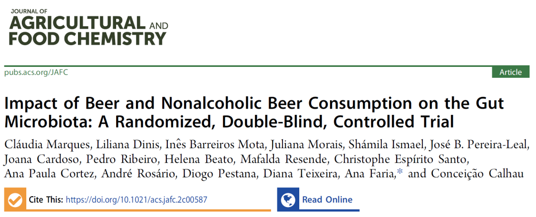 近日诚利和,美国化学会(ACS)旗下期刊 Journal of Agricultural and Food Chemistry 上发表了一篇题为:Impact of Beer and Nonalcoholic Beer Consumption on the Gut Microbiota: A Randomized, Double-Blind, Controlled Trial 的研究论文。